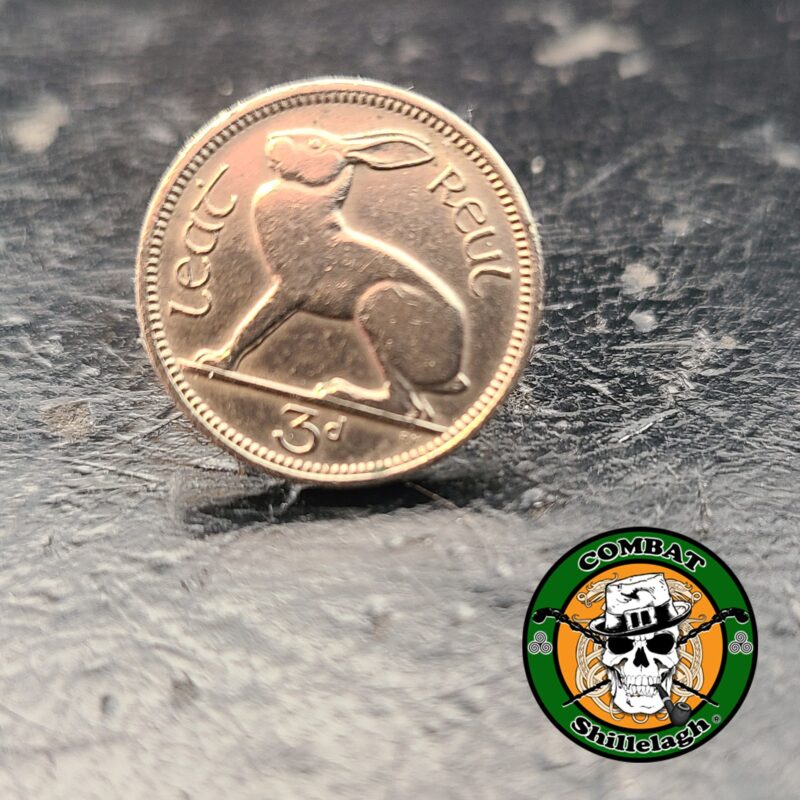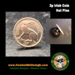 Very cool and unique pin made from an actual 3p coin from Ireland! The front side features the Irish Hare design. You can put this on your lapel, or on your Irish flat cap like I do. No two are exactly the same since they are actual coins from Ireland. The coins are silver in color and have been circulated, so expect some blemishes. Made from an Irish 3P coin. Since Ireland now utilizes the Euro, these coins are no longer in circulation and are fairly hard to get. Year of each coin will vary based upon limited supplies.
